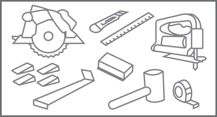 Tools needed: spacers, utility knife, tape measure, I-square and, if needed, a handsaw and tools for repair / preparation of the subfloor. The SPC floor is made to be installed floating without being glued or nailed down: use the Spacing wedges to leave an open