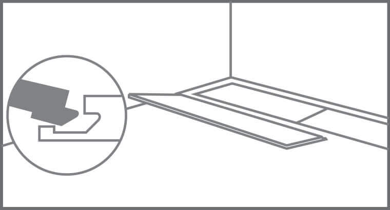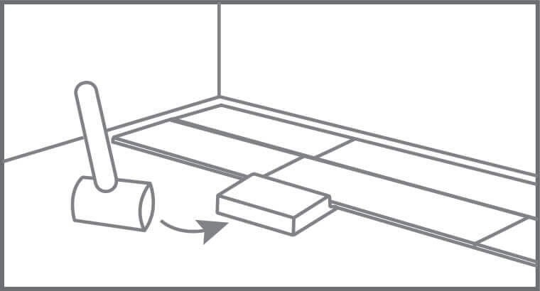 When sawing the panels, ensure the expansion joint under the door at least 10mm (3/8″). If you cannot lift the panel, use an adapted tapping block or pull bar and hammer to tap the panels together with the planks flat on the floor.