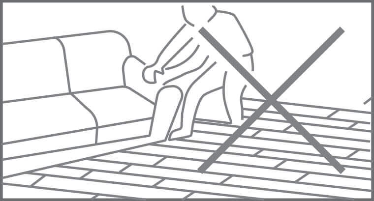 expansion space of about 8 mm around the perimeter and any fixed objects. The floor must be able to move freely – do not connect or install securely to any part of the building. Measure the area where the floor will be installed, making sure to consider the perimeter