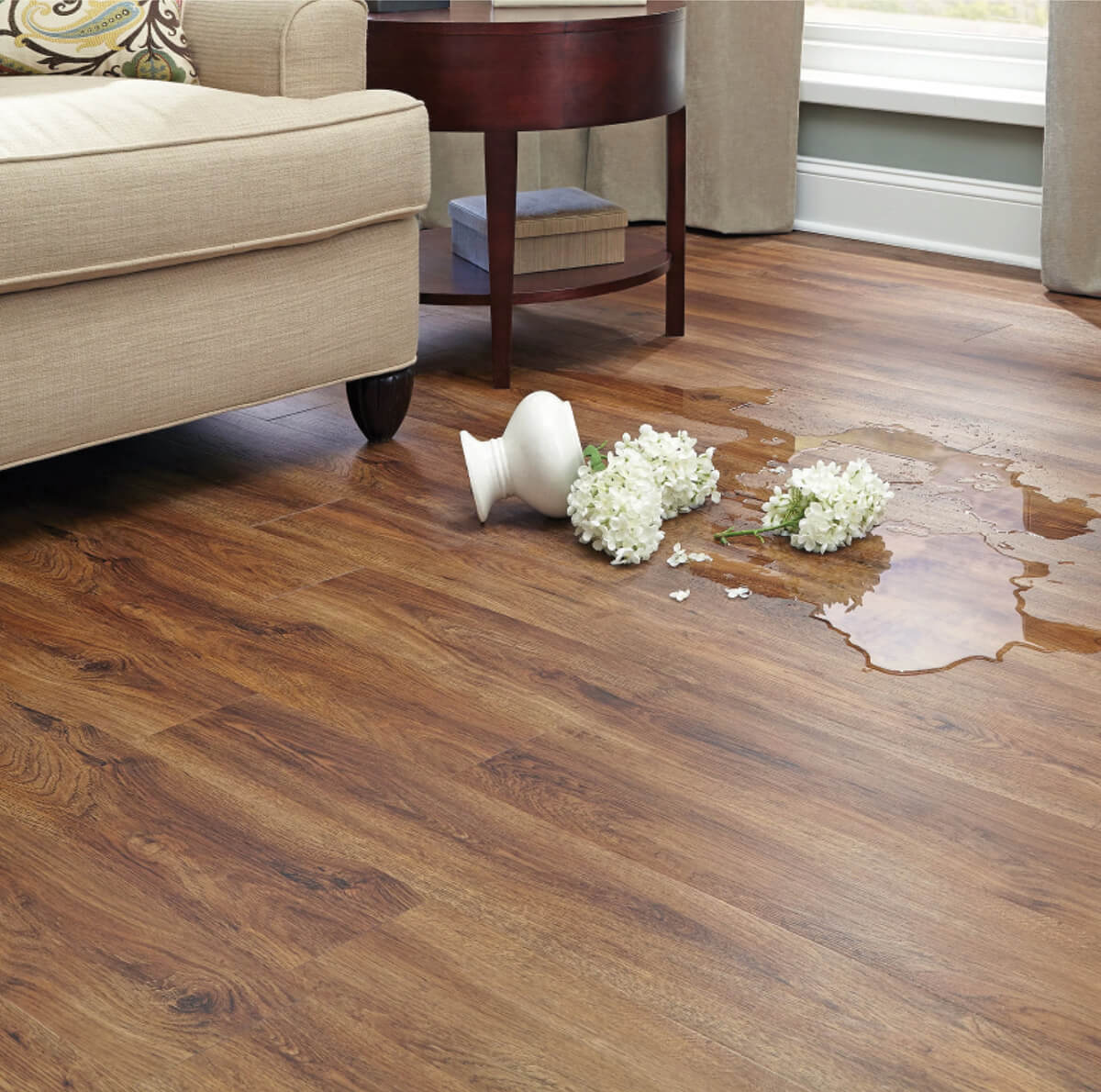 Vinyl planks are completely impervious to water. It’s essential to promptly clean up household spills to prevent the development of mold and mildew.